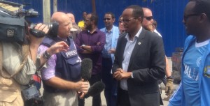 l-r: the aftermath of the October 14th bombing; the demonstration of anti-aS feeling; and the Mayor of Mogadishu with BBC journalists