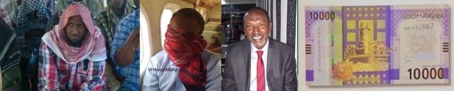 l-to-r: Diriye, who might be dead; Qalbi Dhagah on his way into and then out of captivity; & the new Somali shilling