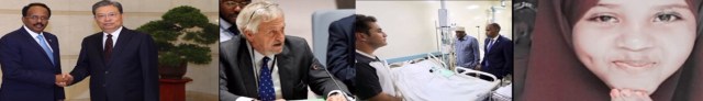 l-to-r: HE the Pres addresses the Blue Economy Conference in Nairobi and receives the credentials of the the new US Ambassador; Elmi Yare, the controversial cleric killed by aS; and the headquarters of Hormuud Telecoms